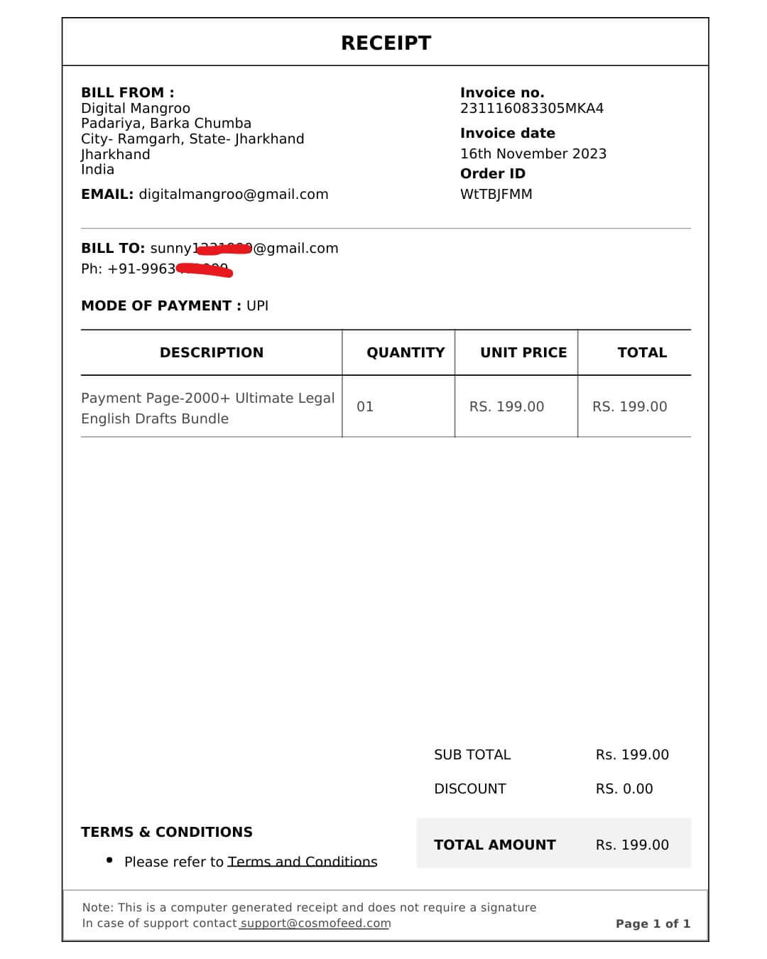 We stand by the quality and value of our Legal Draft Bundle. Your success and satisfaction are our top priorities.If you don’t find this bundle helpful, practical, and worth your money, simply reach out to us — we’ll make it right.